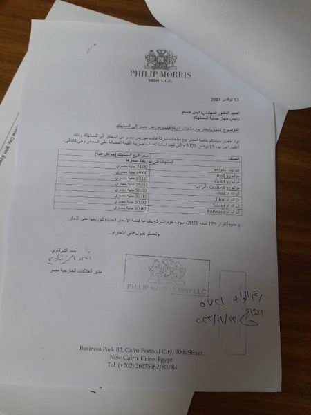وتضمنت قائمة أسعار منتجات فيليب موريس مصر : السعر الرسمي لعبوة ميريت “Merit” بأنواعها 74 جنيها.، والسعر الرسمي لعبوة مارلبورو “Marlboro” بأنواعها 69 جنيها.