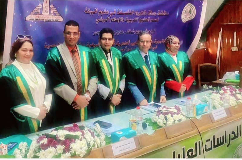 منح عزيز شاكر درجة دكتوراه الفلسفة في علوم البيئة جامعة عين شمس مع التوصية بتبادل الرسالة مع الجامعات المصرية والاجنبية