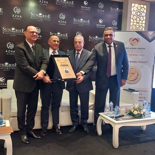 و يتضمن الاحتفال العالمي تكريم السيد حسام الشاعر رئيس مجلس إدارة ” شركة صن رايز للمنتجعات السياحية والفنادق،SkyMax Holidays) بمناسبه فوزه بإحدى أرقى جوائز الاتحاد الافريقي الآسيوي للسياحة والتنمية والتكنولوجيا AFASU ” وهي جائزة AFASU الذهبية”.