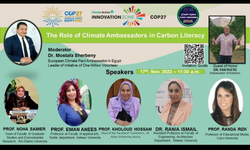 اليوم ندوة بعنوان “دور سفراء المناخ في محو الأمية الكربونية” على هامش فعاليات COP27
